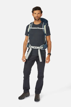 På sidorna finns det en ficka med dragkedja där du t.ex. kan ha vattenflaska, maten, första förband eller soppåsen. Ryggsäcken har många fästpunkter för bl.a. vandringsstavar och isyxa samt eventuella större prylar som liggunderlag. Det finns även komprimeringsremmar på sidorna så du kan tighta åt packningen.