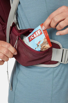 Midjebältet har en ficka på varsin sida om höften där du får plats med en liten kamera, snacks och kanske en kompass. Bröstremmen håller axelremmarna på plats och du kan såklart justera efter din kropp. På bröstremmen sitter en visselpipa för nödsituationer.