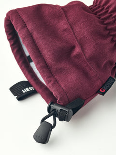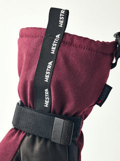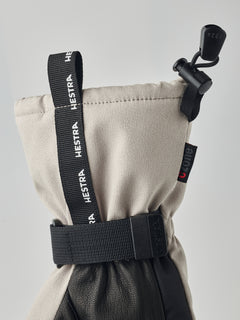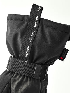 Den långa kragen med elastisk dragsko håller snö och kyla ute, medan kardborrejustering runt handleden säkerställer en bekväm och tät passform. Handsken har dessutom ett fäste för handledsrem (handcuffs) som extra tillbehör.