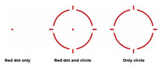 - MR (multi-riktmedel), 2 MOA punkt med 65 MOA ring för snabbt och exakt sikte. Tre valbara lägen – vanlig rödpunkt, cirkel eller båda riktmedlen i ett kombinerat läge.