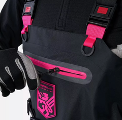 Rachels vadarbyxor är speciellt utformade för ryttare och har en anatomisk skärning som ger absolut rörelsefrihet, och med hjälp av ett elastiskt bälte och hängslen kan du anpassa vadarbyxorna så att de passar dig – de kommer att passa som hand i handske! Rachel har också en bröstficka för personliga tillhörigheter med en vattenavvisande YKK-dragkedja som skyddar saker från vatten och smuts.