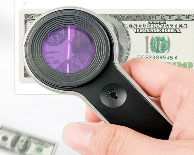 Frimärkslupp för kvalitetsgranskning och för avslöjande av falska frimärken, pass, sedlar m.fl.
