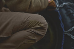 Hill jaktbyxor är utvecklade för jägare och friluftsentusiaster som vill ha ett par bekväma byxor med låg ljudnivå, hög slitstyrka och genomtänkt funktionalitet. Materialkombinationen ger både hållbarhet och följsamhet, vilket gör byxorna väl anpassade för rörelseintensiva aktiviteter i skog och mark.
