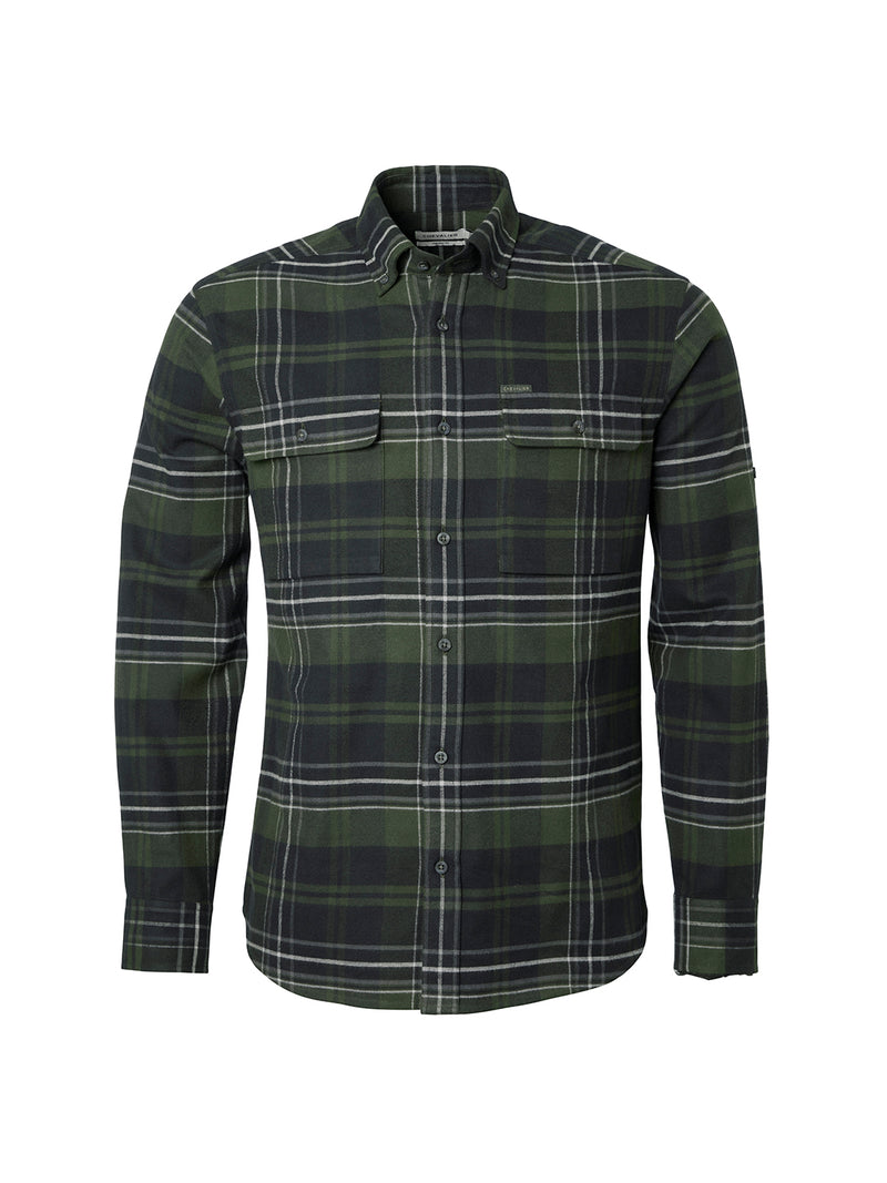 Heron Flannel Shirt Men är en skjorta tillverkad i en kraftig, lätt borstad flanell av ekologisk bomull. Passformen är vår Regular Fit, vilken är en rak modell som har veck i ryggen som ger extra volym. Heron Flanellskjorta har två bröstfickor med lock och bälg, utanpåliggande knappslå och knappar i hornimitation. Heron har också en ”Butchers Button” en smart knapp på ärmens övre del och ett extra knapphål på manschetten så att ärmen enkelt kan fästas upp vid behov.