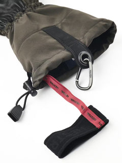Hängöglor & karbinhake – möjliggör upp-och-ned-vänd förvaring för att undvika snö och väta i handsken.
