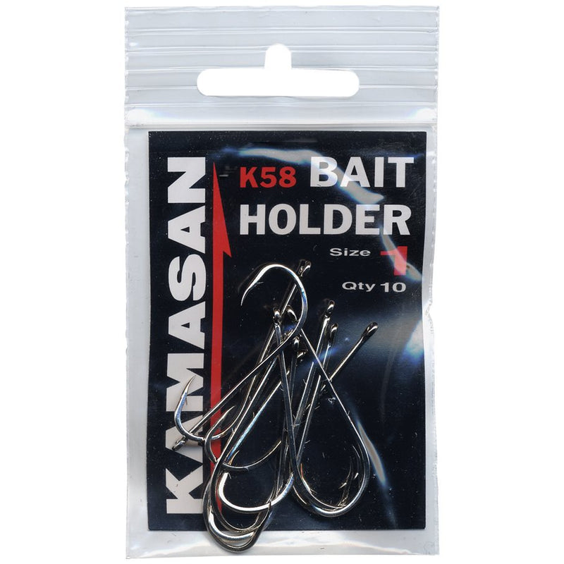 Baitholderkrok från Kamasan, Sylvassa och starka. Dessa har hulling på skaftet för att säkerställa att ditt bete sitter kvar.