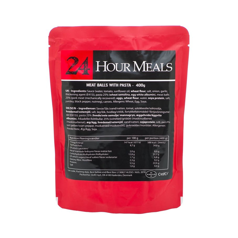 Maträtterna är framtagna av 24 Hour Meals ihop med försvarsmakten vilket borgar för att försvarets behov av energi / näringsinnehåll och hållbarhet uppfylls.