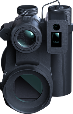 - Inbyggd laseravståndsmätare som möjliggör en exakt avståndsbedömning till målet oavsett hur mörkt det är ute.