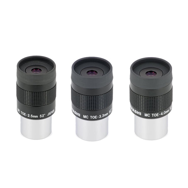 Takahashis okular i TOE-serien är de ultimata okularen när det gäller visuell observation vid mycket hög förstoring. Använder du dessa okular tillsammans med ett premiumteleskop kommer du få en bild av mycket hög kvalitet när diffraktionsgränsen över hela synfältet, som är på 52°.