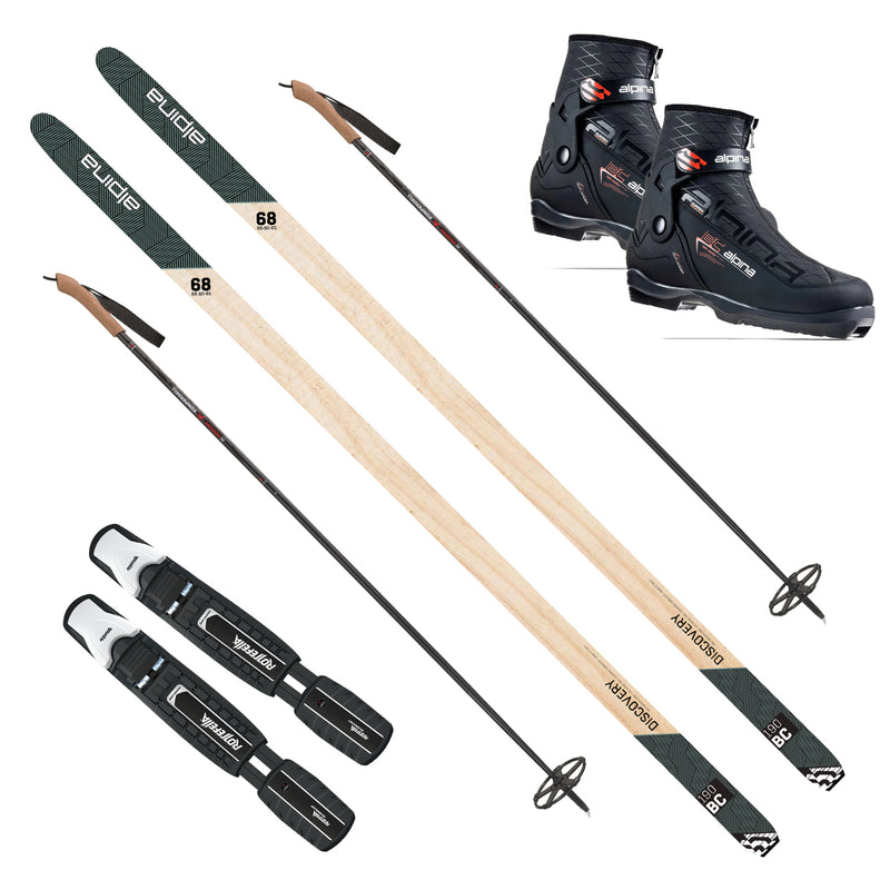 Paketet innehåller en fin turskida från Alpina som passar perfekt för låglandsåkning. Skidan bär dig bra även på djupare snö och har ett "vallafritt" belag som ger dig fäste och passar även i längdskidspår om du behöver blanda terräng och underlag för att ta dig ut till äventyret.