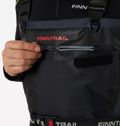 Vadarbyxorna har en vattentät YKK Aquaguard-utvändig ficka för förvaring, tillsammans med ett fleecefodrat handvärmningsfack med en öppning för vattendränering. Inuti finns en vattentät PU-utfällbar ficka med dragkedja som säkerställer säker förvaring av värdesaker. En gummerad bröstpanel ger fästpunkter för utrustning , och en inbyggd lapp är perfekt för flugfiskeutrustning. Reflekterande element ökar säkerheten och användbarheten under förhållanden med svagt ljus. Den eleganta, moderna designen kombinerar funktionalitet med en professionell estetik. Helt förseglade sömmar och dragkedjor säkerställer maximal vattentät prestanda, medan setet inkluderar ett vattentätt smartphone-fodral och en praktisk förvarings- och bärväska.