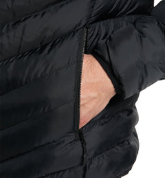Huvtröjan är isolerad med Mimic GOLD – ett innovativt syntetiskt isoleringsmaterial som efterliknar dunets värmande egenskaper men behåller sin funktion även i fuktiga förhållanden. De vinklade kviltningssömmarna ger både en jämn värmefördelning och ett distinkt, tekniskt uttryck. Den isolerade huvan med elastiska kantband bidrar till extra skydd och följsam passform.