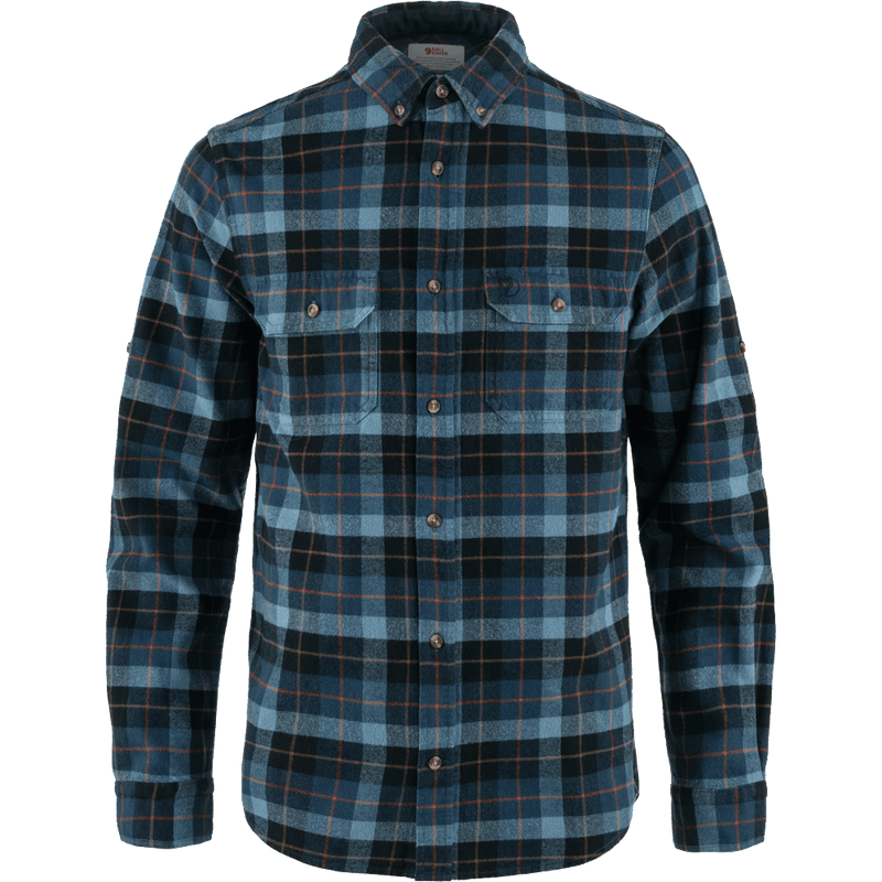 Långärmad friluftsskjorta med button down-krage och klassisk passform. Sydd i behagligt mjuk bomullsflanell med G-1000-förstärkning på insidan av kragstånd, ärmslut och ficklock. Två bröstfickor med pennficka. Ärmarna kan rullas upp och hålls på plats med en knapp.