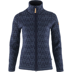Vackert jacquardstickad kofta i mjuk och varm 100 % spårbar lammull, inspirerad av klassisk skandinavisk folklore. Övik Knit Cardigan är en tidlös och funktionell favorit som värmer lika bra under vinterpromenaden som under lugna stunder hemma.