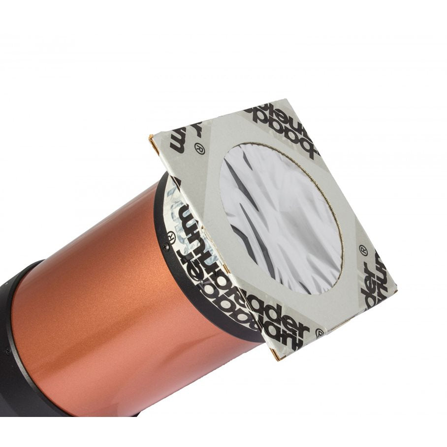 Optimalt skydd för kameran Folien är på båda sidor täckt av ett skyddande filterlager. Varje lager kan innehålla mikrohål, som UV-strålning kan passera. Med två lager är det inte längre möjligt. Filtret skyddar kameran perfekt och tillåter fokusering/centrering via kamerans sökare. Längre observationer rekommenderas dock inte för att undvika skador till ögat.