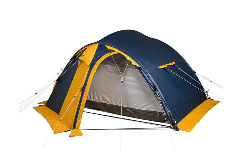Stetind 3 Polar är ett stabilt och robust kupoltält för 3 personer. Tältet är utrustat med två ingångar och två förtält, vilket gör det enkelt att organisera sig på varsin sida av tältet – och man har alltid en ingång i lä från vinden. Myggnät på ena dörren på yttertältet och innertältet.