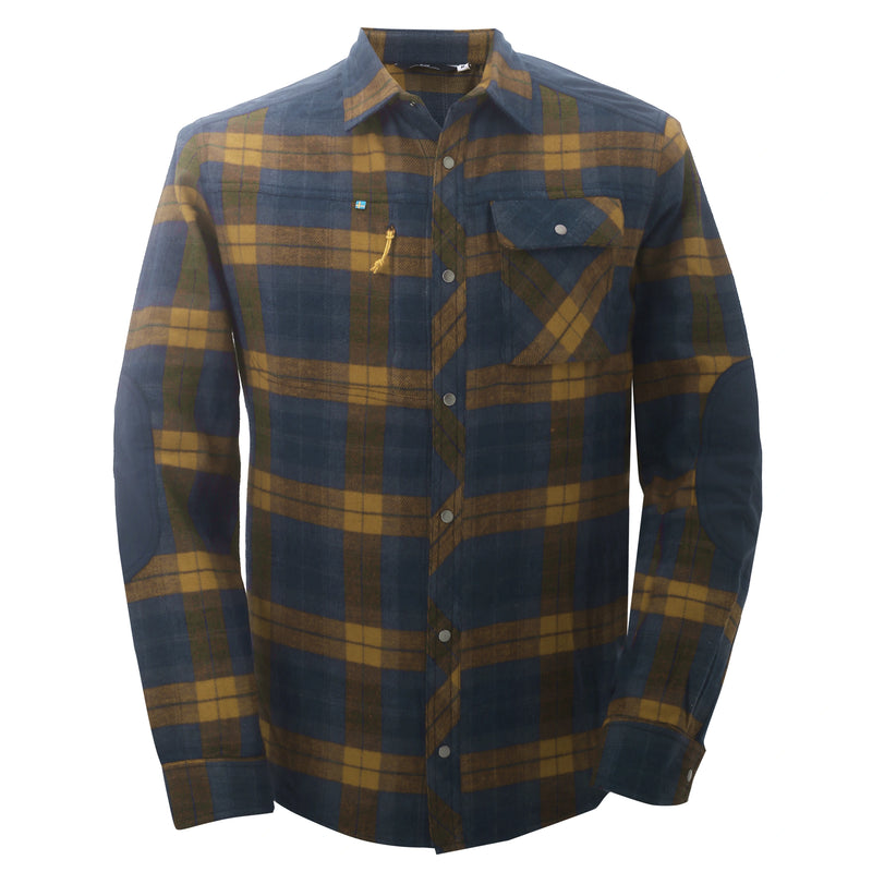 Skjortan är tillverkad i en robust flanellväv bestående av 59 % ekologisk bomull, 39 % återvunnen polyester och 2 % spandex, vilket ger både slitstyrka och lätt stretch för ökad rörelsefrihet. Den har förstärkta armbågar, justerbara ärmslut och dubbla bröstfickor – funktioner som gör den till ett självklart val för arbete, vandring eller fritid.