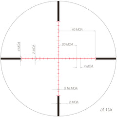 Riktmedlet är placerat i andra fokalplanet (SFP) och är ett MOA-baserat hårkors i belyst utförande. Belysningen styrs via belysningsknapp/vred som erbjuder flera ljusnivåer samt en hög effekt för svagt ljus. Torn med taktiska klick och zero-set ger snabb och exakt justering av höjd och sida. Parallaxen justeras via sidofokus från cirka 10 meter till oändlighet. Zoomringen är exakt och lättmanövrerad, och förstoringsspak medföljer för snabb växling mellan förstoringar.