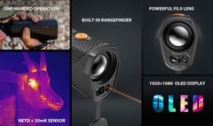 RIX Titan T3 är en högpresterande värmekamera med avancerade funktioner för jägare, spaning och nattobservationer. Den kombinerar robust design, låg NETD < 25 mK och hög användarvänlighet för praktisk användning i fält.