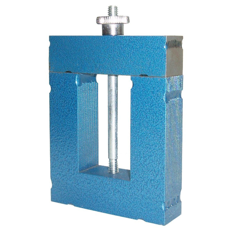 I centrum finns en stav med skruv för att hålla samman I- och U-kärnan.