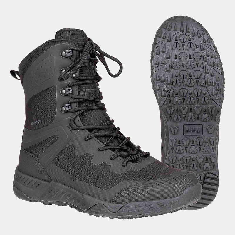 Magnum Ultima 8.0 WP Side-Zip är en hög och smidig känga som är vattentät med god andningsförmåga. Vilket gör den perfekt till dig som är aktiv. Magnum utvecklar sina kängor till yrkespersonal som militär, polis, ordningsvakter och väktare. Så varje detalj är genomtänkt för att kängorna ska användas hela dagen under tuffa förhållanden.
