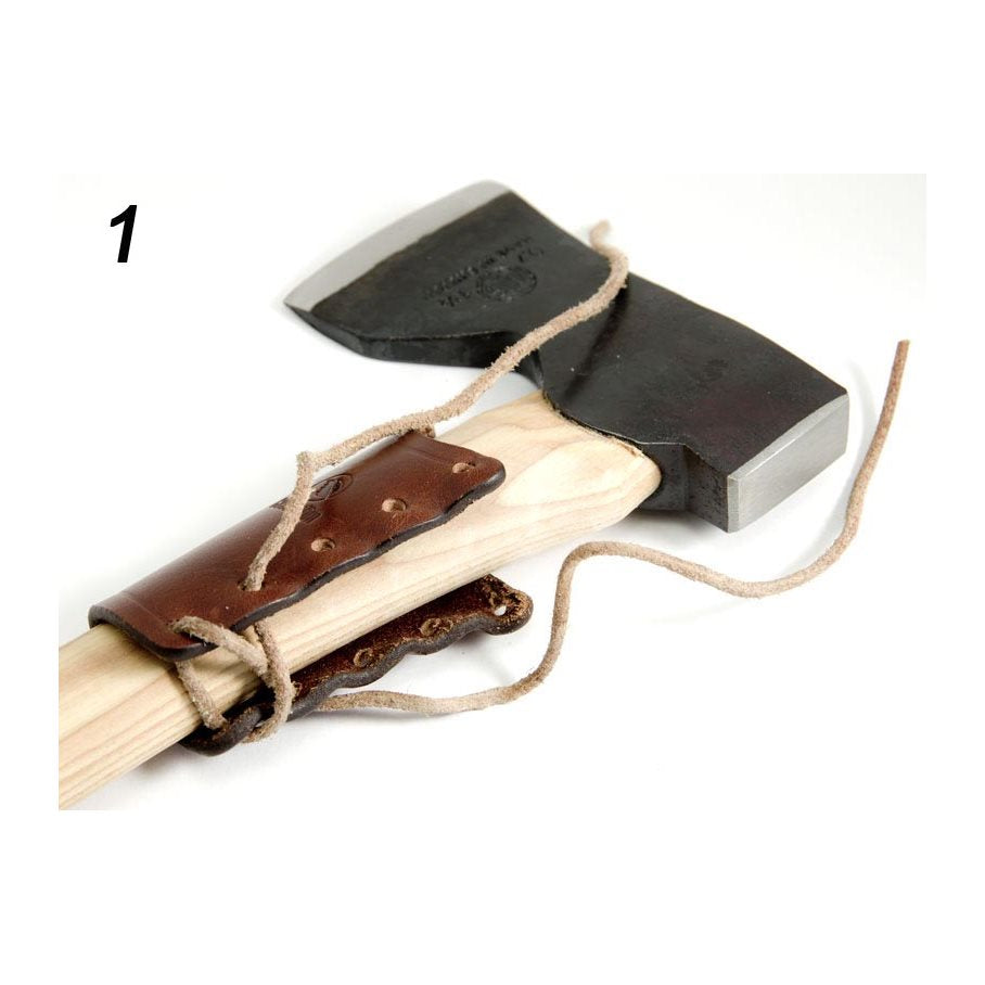 Läderskyddet ger även ett snyggt utseende på yxan.